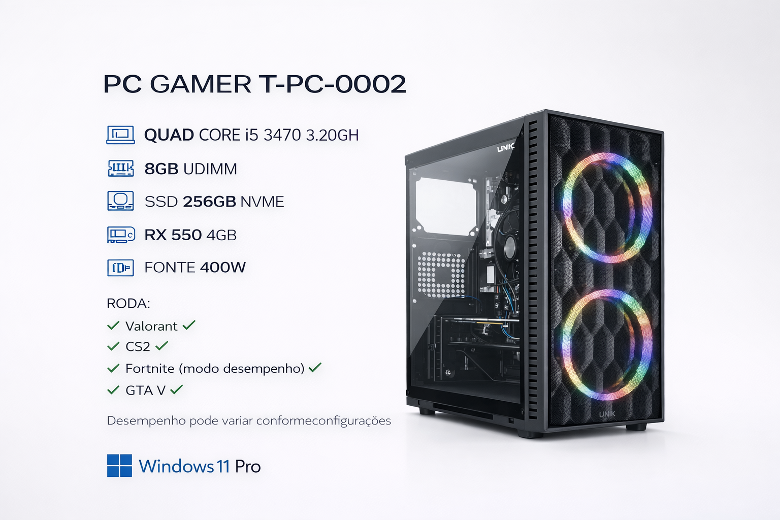 COMPUTADOR T-PC-0002 QUAD CORE I5 3470 3.20GHZ MEM 8GB DDR3 SSD 256GB NVME RX 550 4GB FONTE 400W