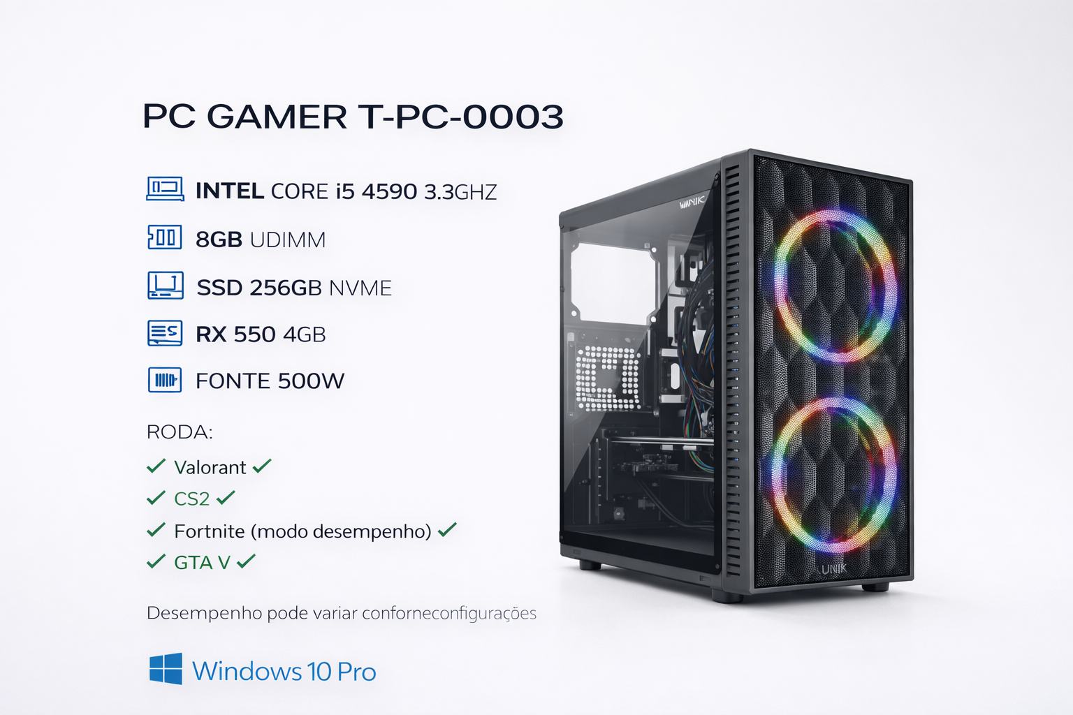COMPUTADOR T-PC-0003 CORE I5 4590 3.3GHZ MEM 8GB DDR3 SSD 256GB NVME RX 550 4GB FONTE 500W WINDOWS 10 PRO