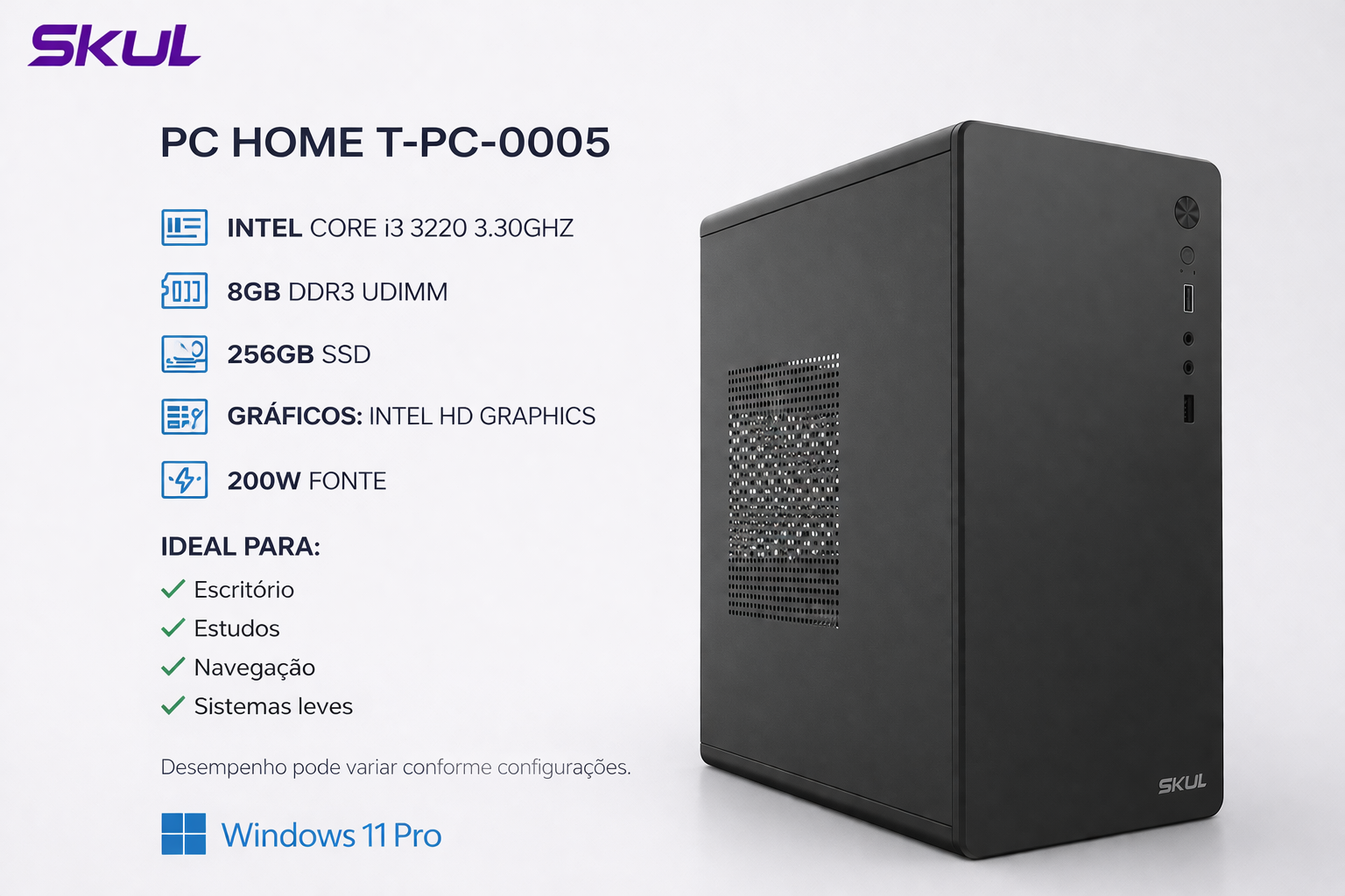 COMPUTADOR T-PC-0005 CORE I3 3220 3.30GHZ MEM 8GB DDR3 SSD 256GB FONTE 200W