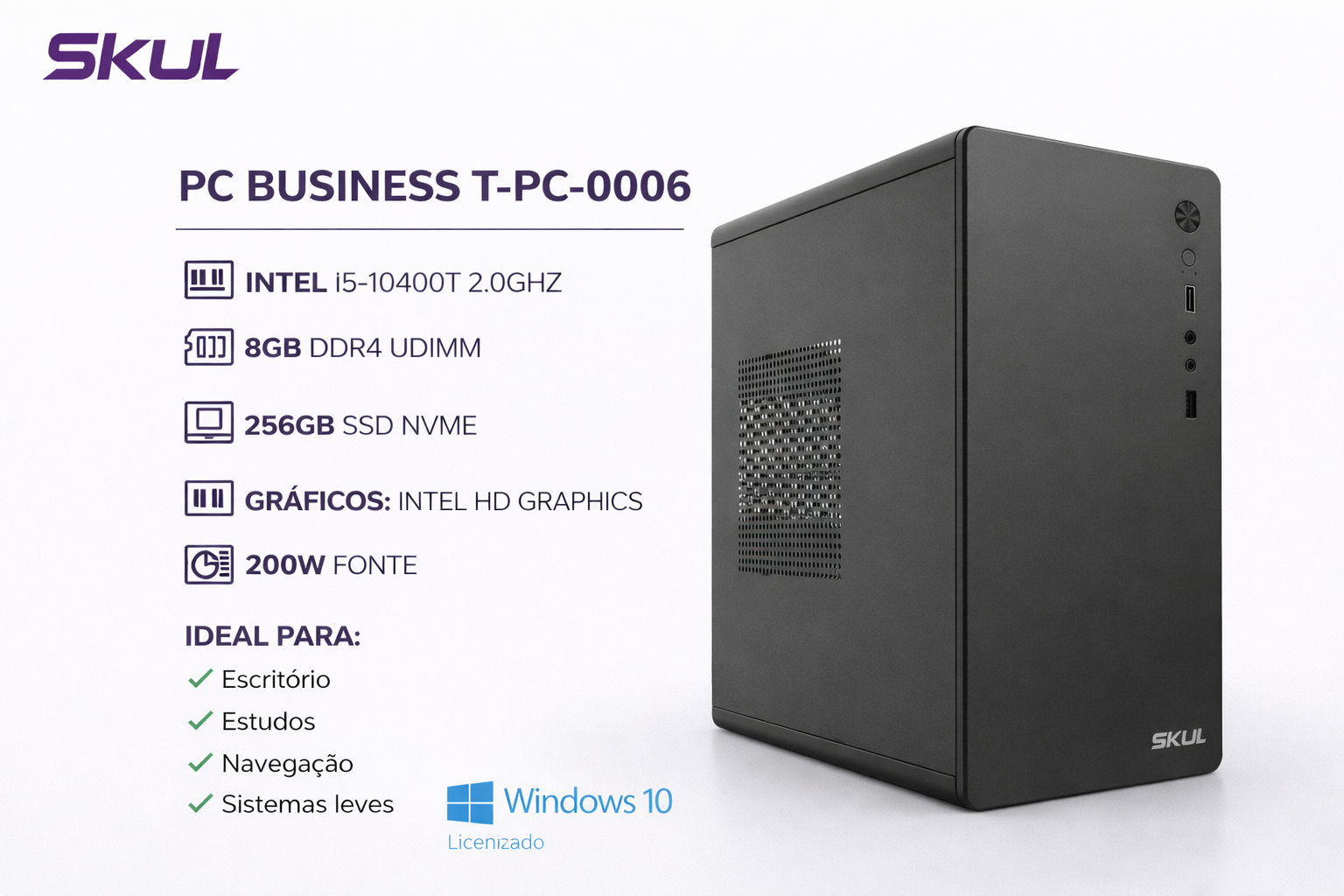 COMPUTADOR T-PC-0006 I5 10400T 2.0GHZ MEM 8GB DDR4 SSD 256GB NVME FONTE 200W
