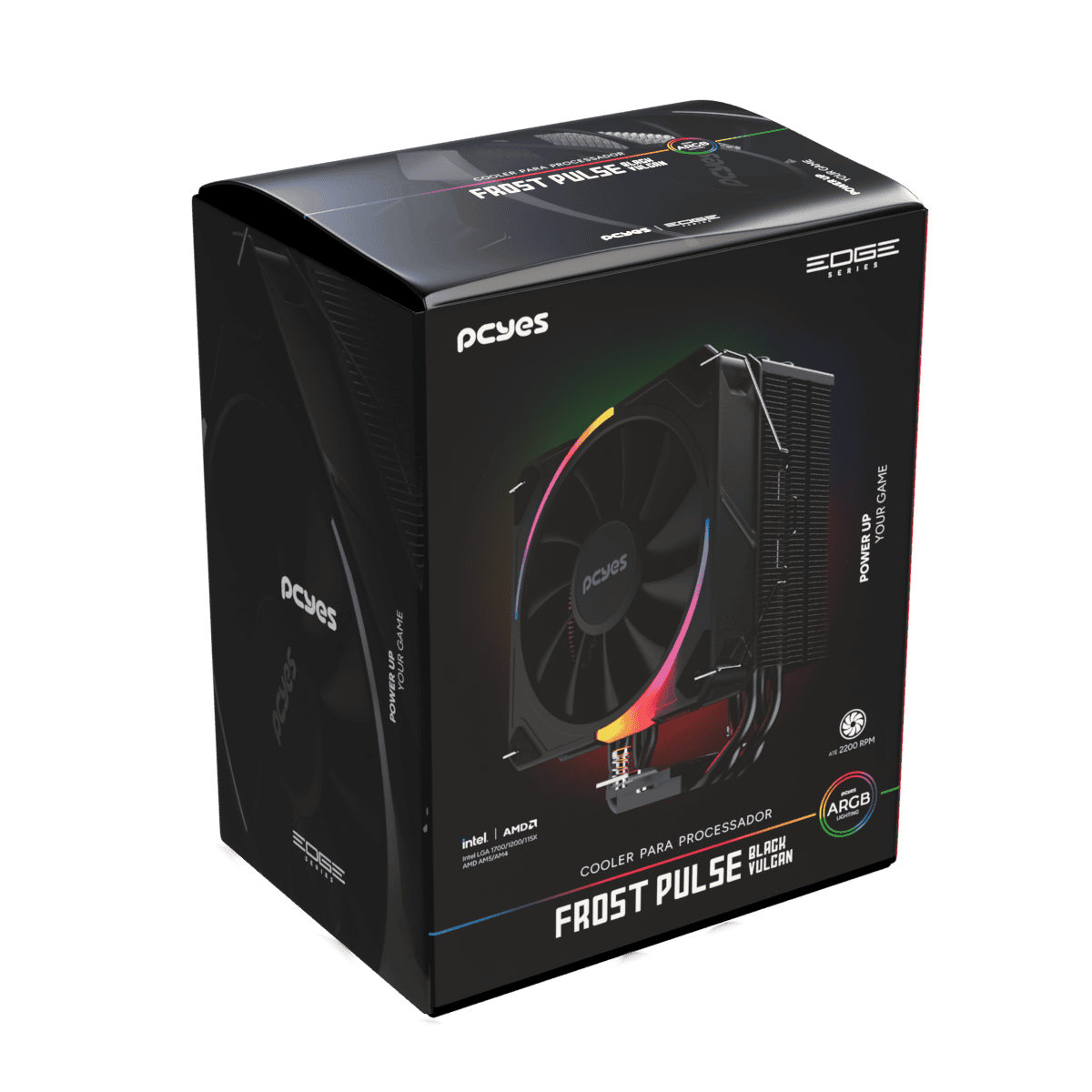 O PCYES Frost Pulse ARGB Black Vulcan foi desenvolvido para entregar refrigeração potente, estabilidade térmica e visual gamer premium. Com suporte para TDP de até 180W, atende computadores voltados para jogos, renderização e multitarefa pesada com excelente eficiência.