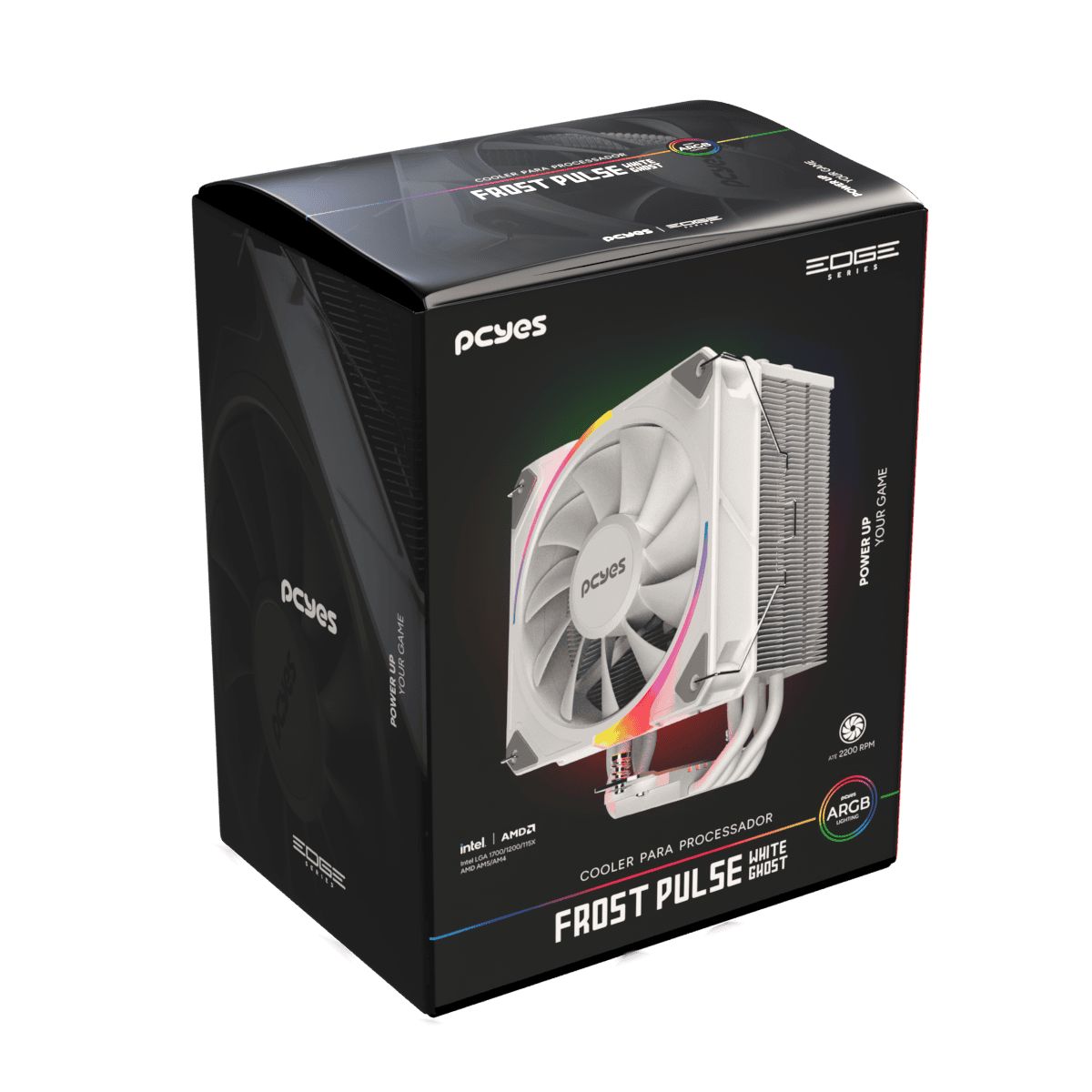 O PCYES Frost Pulse ARGB White Ghost combina eficiência térmica, design sofisticado e capacidade para processadores de maior desempenho. Com suporte para TDP de até 180W, é ideal para setups gamer, criação de conteúdo e estações de trabalho que exigem estabilidade térmica em uso intenso.