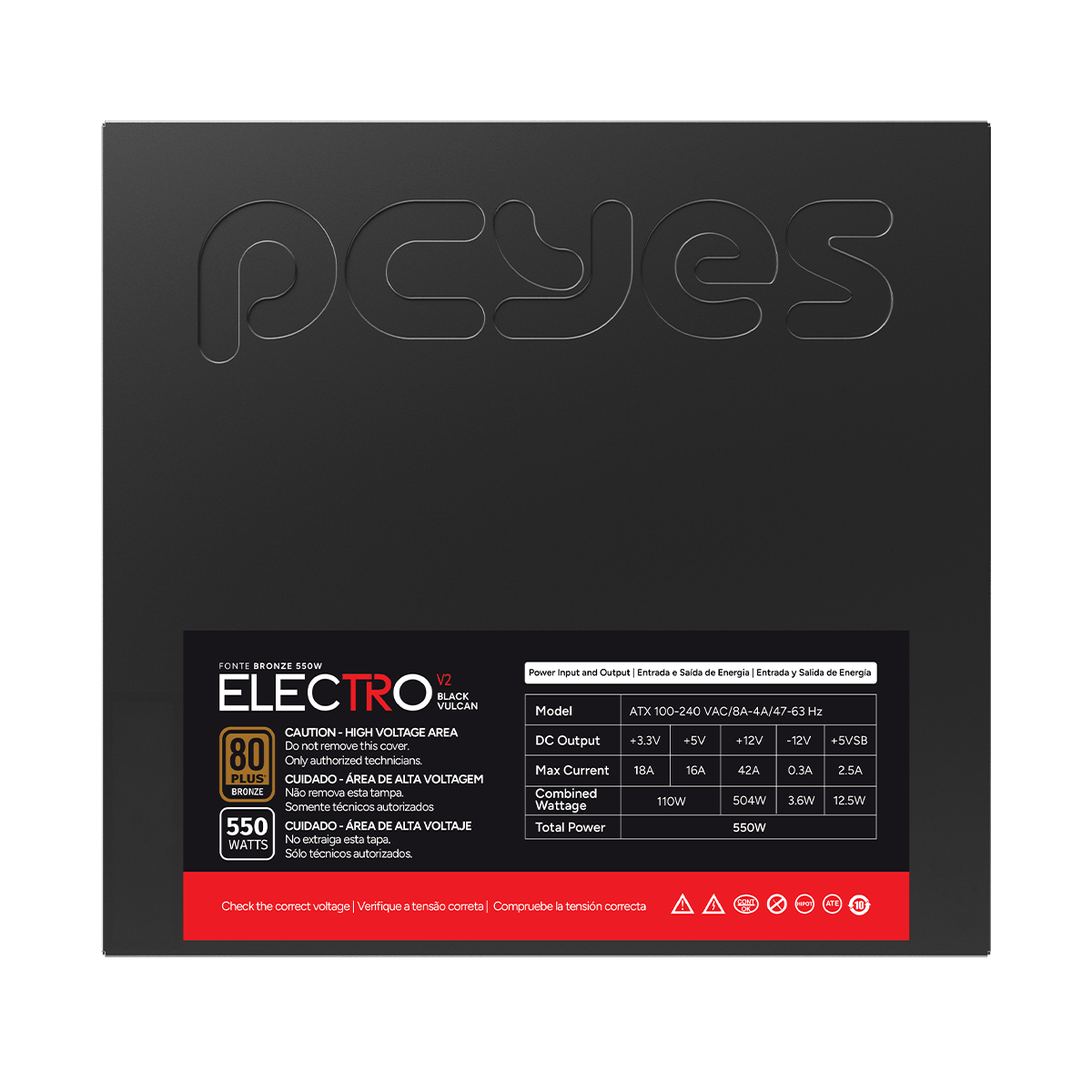 Com a revisão feita pela equipe de desenvolvimento de produto da PCYES, o novo lote de fontes possui upgrades em relação ao anterior. Além de contarmos com mais conectores, melhoramos ainda mais a qualidade de nossos componentes, oferecendo maior segurança e qualidade em nossas soluções de energia.