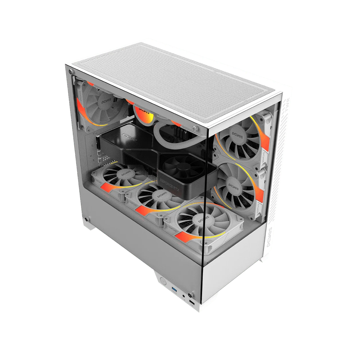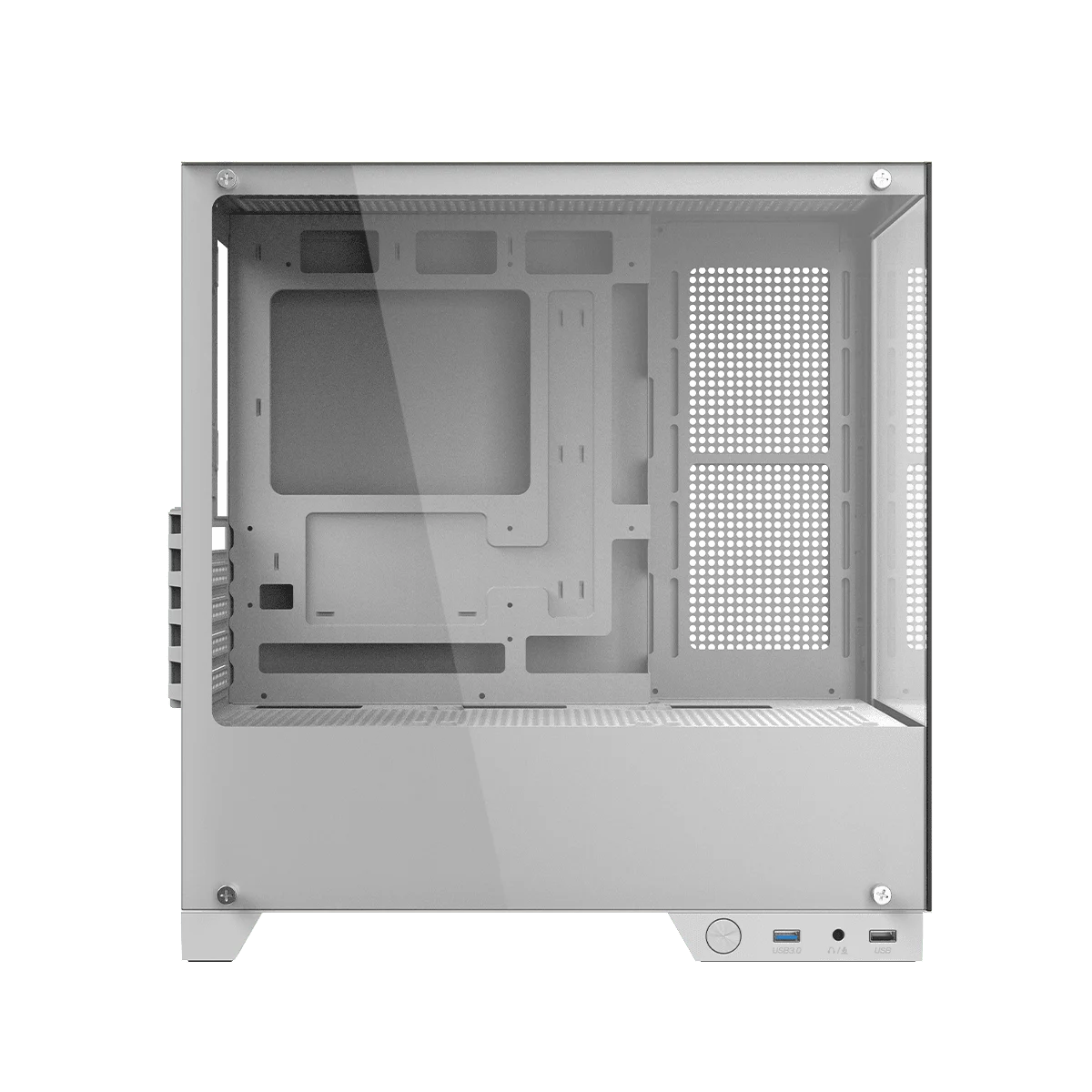 Frontal e lateral em vidro temperado;