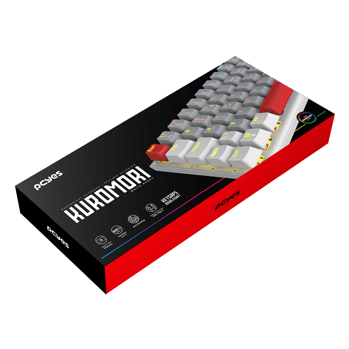 Já equipado com keycaps tri-color confeccionadas com o método double shot injection e iluminação rainbow o teclado Kuromori traz um visual incrível e muita eficiência para seu setup.