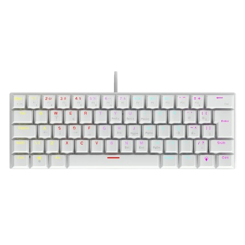 Com switches mecânicos Red, o Anihi entrega uma digitação suave, linear e silenciosa, sem feedback tátil, ideal para quem busca velocidade e conforto em longas sessões de jogo ou trabalho. A iluminação LED Rainbow traz personalidade ao setup, enquanto o anti-ghosting de 22 teclas garante máxima precisão nos comandos, mesmo em combinações simultâneas.