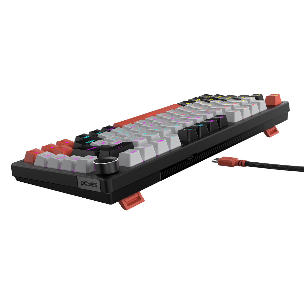 Já equipado com keycaps tri-color confeccionadas com o método double shot injection e iluminação rainbow o teclado Arkeum traz um visual incrível e muita eficiência para seu setup.
