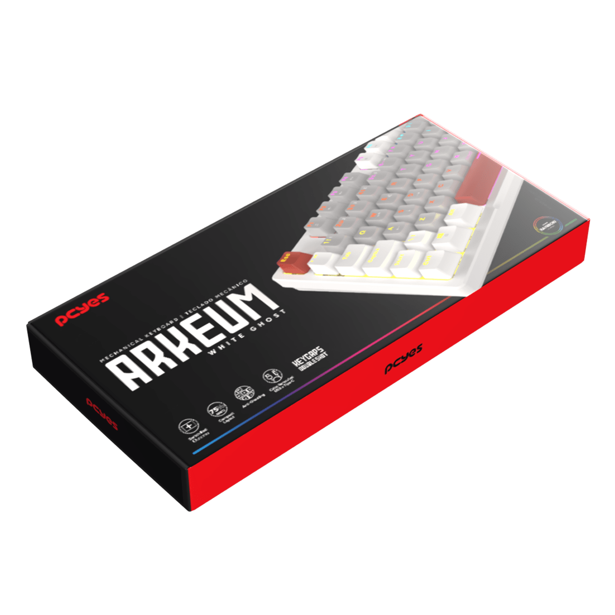 Já equipado com keycaps tri-color confeccionadas com o método double shot injection e iluminação rainbow o teclado Arkeum traz um visual incrível e muita eficiência para seu setup.